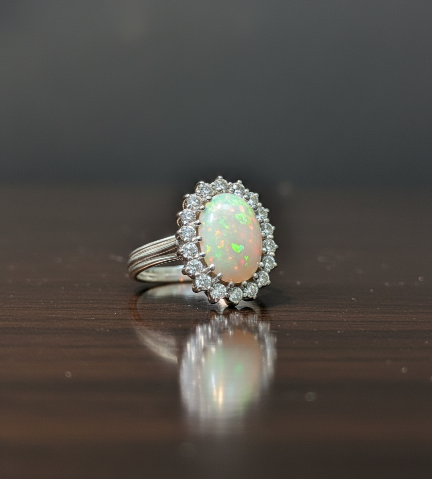 Total Carat Weight: Combined with the opal, this piece commands a significant presence with a 1.78 ctw profile